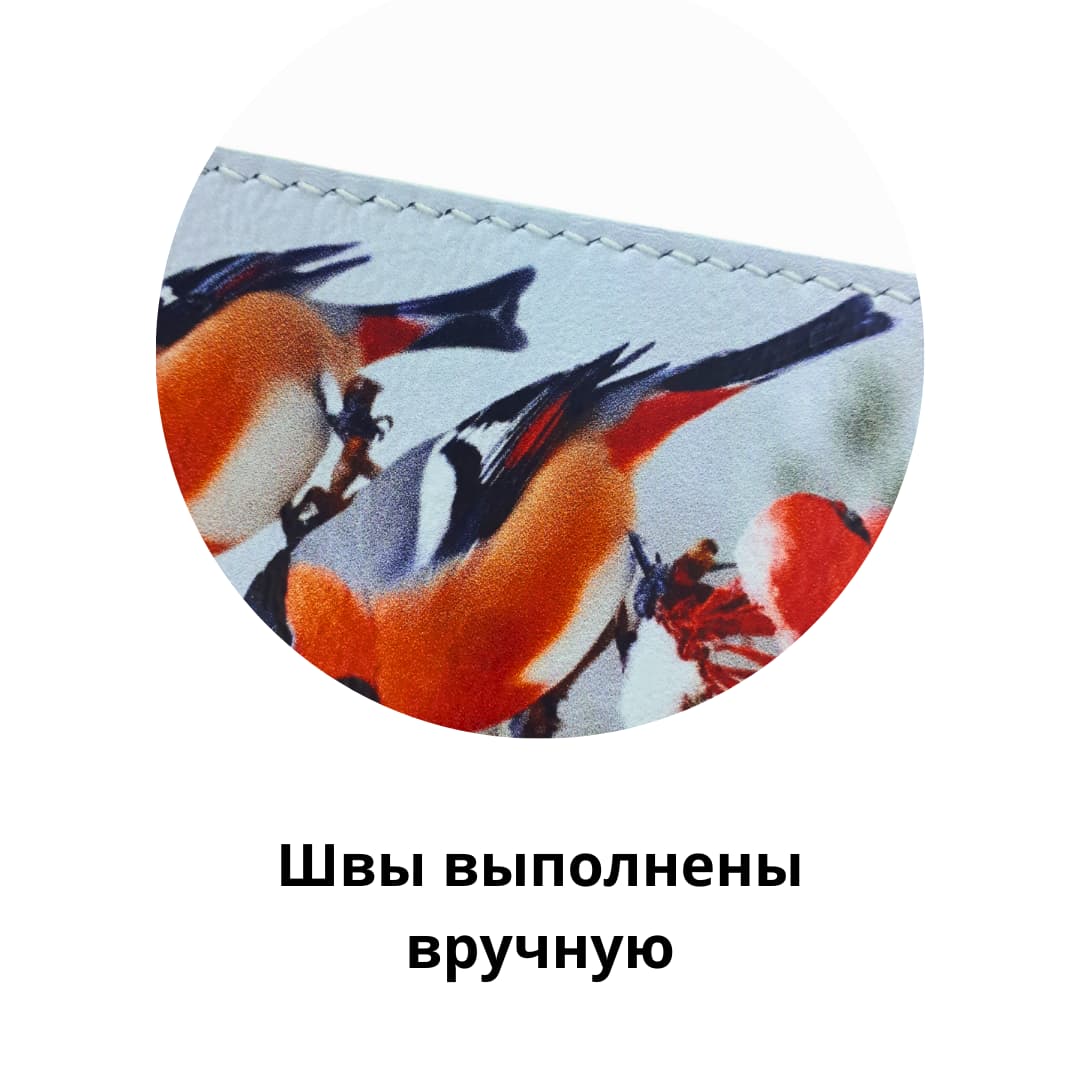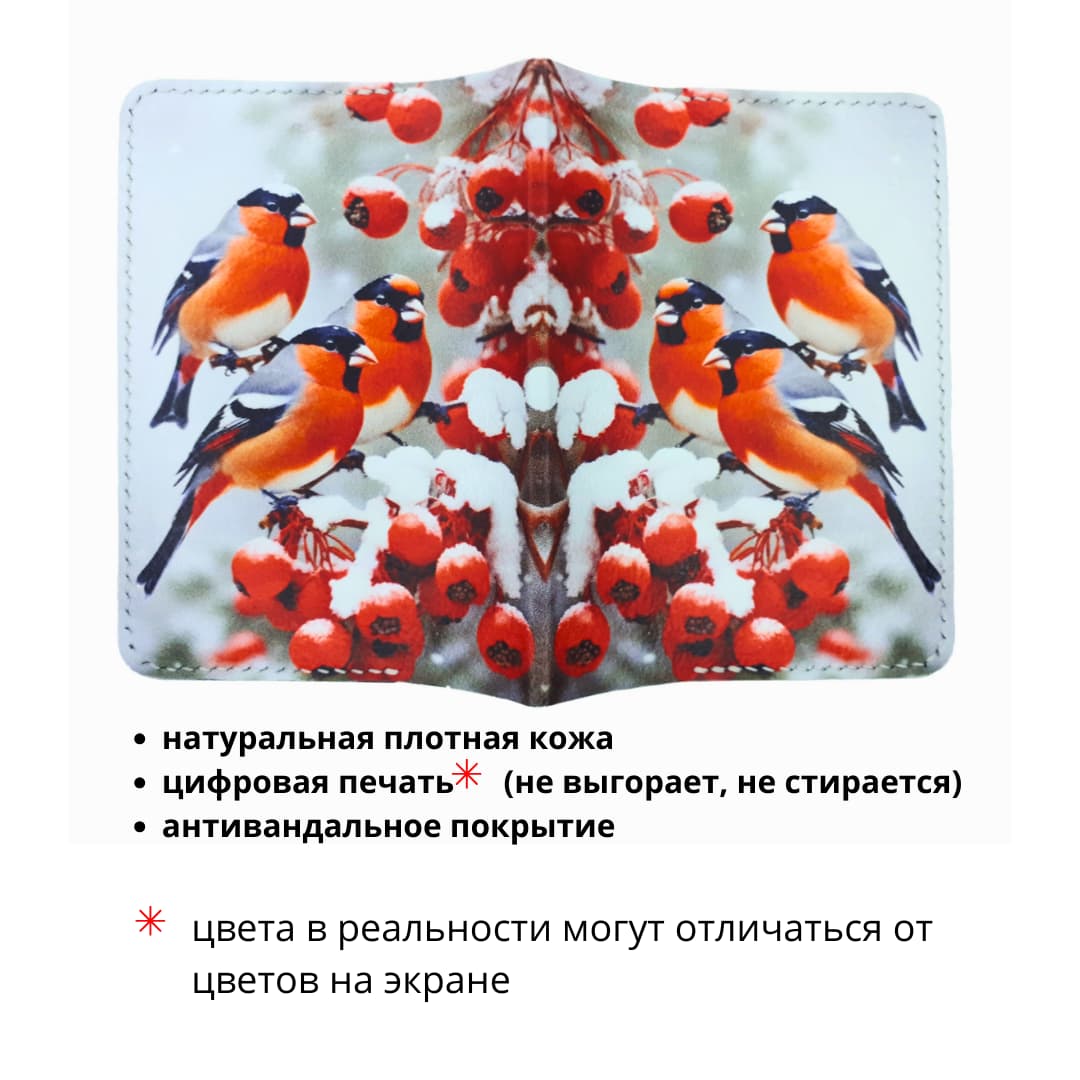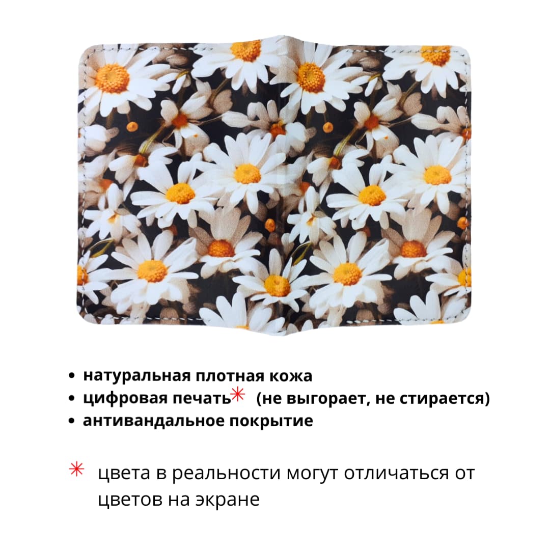 - использована кожа премиального качества итальянского производства - принт нанесен в фабричных условиях - цвета реально яркие - принт авторский, вы нигде не встретите такой же - ручной шов не распускается - урезы (открытые срезы кожи) покрашены краской производства Италия - бахтарма (изнаночная сторона кожи) обработана японским средством для полировки бахтармы. Отсутствуют торчащие ворсинки - сформирован сгиб, обложка сразу «садится» на документ - универсальный размер.